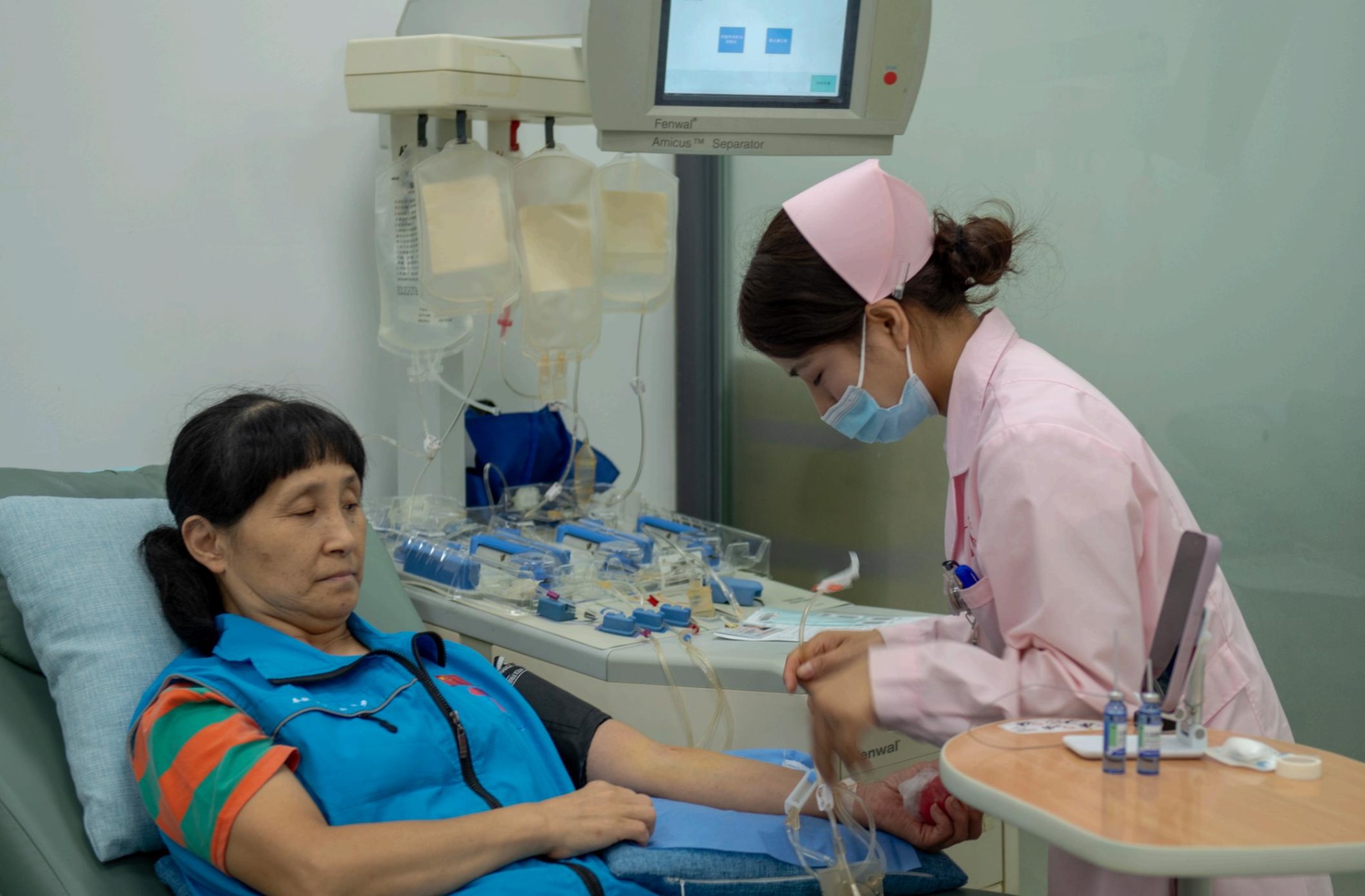 无偿献血这件事,於云坚持了20多年,献血次数达到了369次,其中,献全血7次,累计1400ml;单采血小板362次,总献血量达83800ml。她还加入了中国造血干细胞捐赠者资料库,签订了遗体器官组织捐献协议,积极推动“三献”公益事业。图为合肥好人於云在省立医院无偿献血。(刘传耀 摄)
