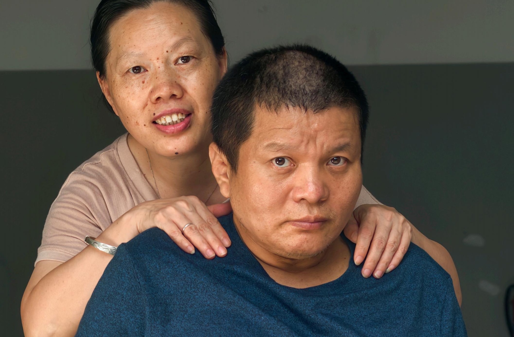 多年前樊竹香的丈夫不慎摔伤致高位截瘫,樊竹香在他身边耐心伺候。公公婆婆不忍心儿媳妇被这个苦命的家庭拖累,屡次劝她趁年轻改嫁,但她依然不离不弃。近20年特殊的经历让樊竹香十分坚强,她说:“家庭是我的寄托,我不想让家庭散掉,而且我还想让我的孩子幸福。”图为樊竹香和爱人和在一起。(刘兵生 摄)