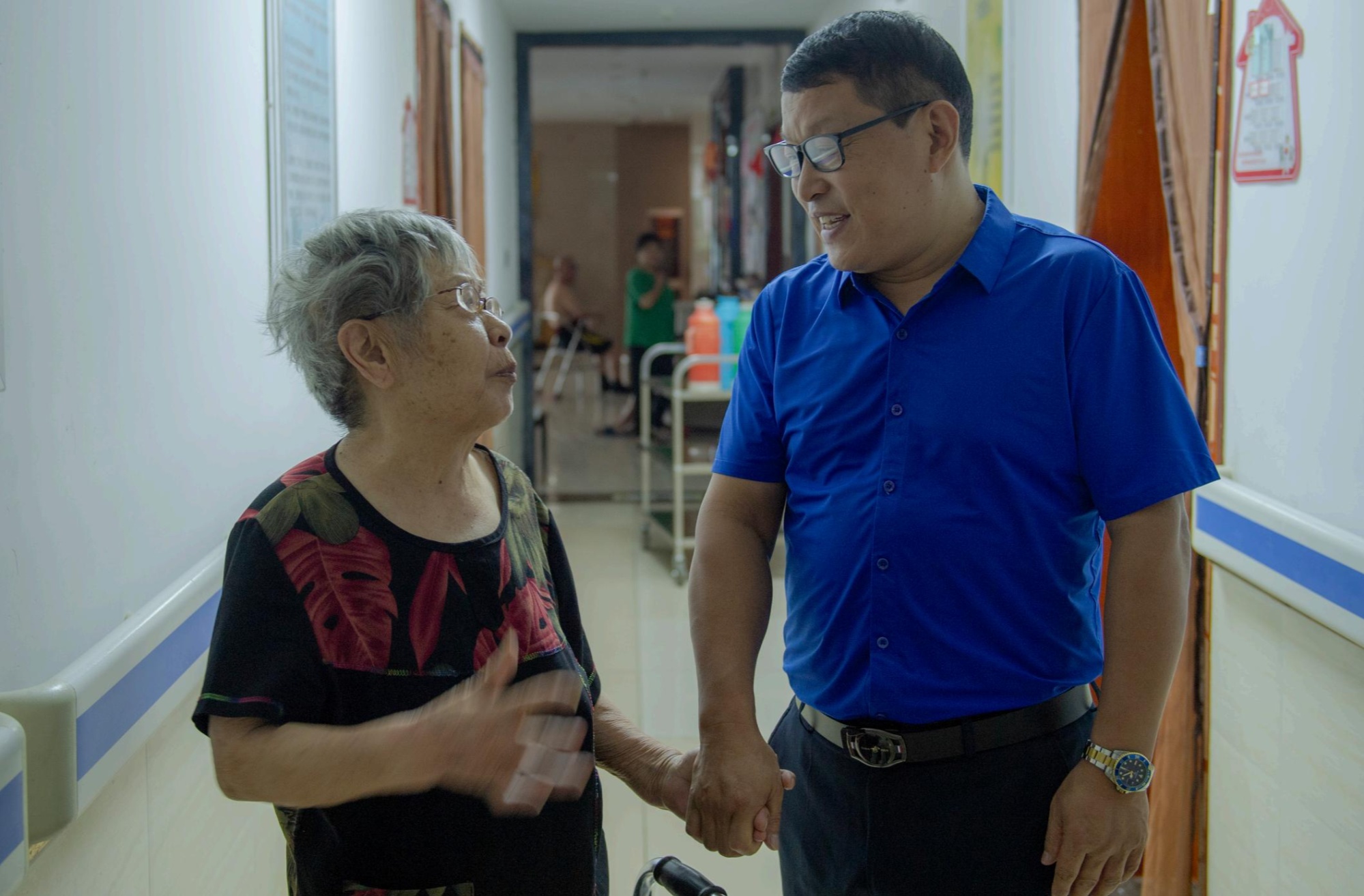 刘为民主要从事公益性文艺演出活动,坚持走在公益的道路上,个人共捐助结对安徽贫困地区失学儿童17名,为了让学生没有负担,他从来不向学生透露自己的信息。他还多次组织团队赴敬老院慰问老人、为希望小学捐款、举办大型赈灾义演等慈善公益活动。图为合肥好人刘为民在敬老院看望老人。(刘传耀 摄)