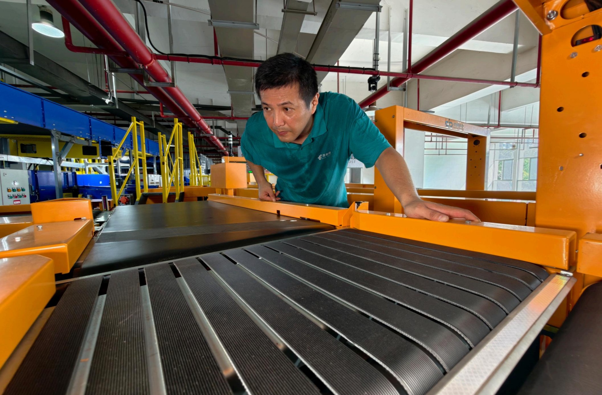 工作20多年,郭正谷先后主持参与OVCS信函分拣机、斜带机减速器、扁平件PLC、包分机滑触轨电控改造、第二邮件处理场地建设、国际互换局建设、RFID试点项目建设等几十个项目。他主动贴近三级物流体系建设,强化重点项目保障,高效支撑涉农寄递项目运营。先后获得“中国好人”、安徽省优秀共产党员、合肥市优秀共产党员、合肥市劳动模范、合肥市五一劳动奖章、全国邮政系统先进个人等荣誉。图为郭正谷在合肥邮件处理中心进行设备维护。(宣梅 摄)