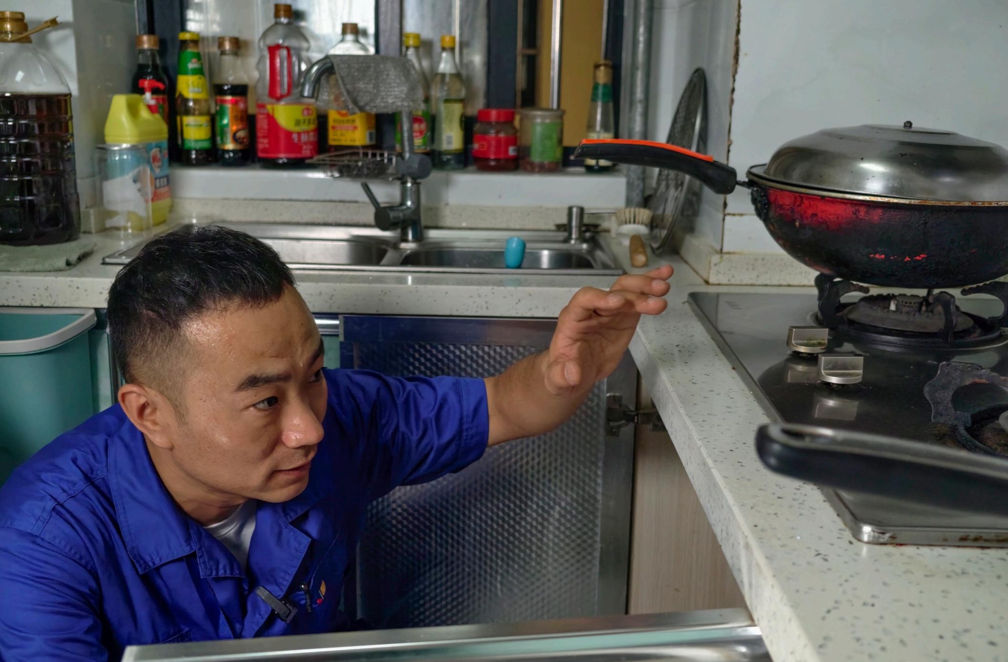 宗洪博以全国劳模徐辉为师,主动加入志愿服务组织“徐辉 假日服务小分队”和“吴雄飞爱心班”。从业14年来,他参加 燃气志愿服务,以及敬老爱老、爱绿护绿、关爱留守儿童等 “三关爱”活动超600次。2025年初,他牵头发起“银龄安居”志愿服务,以常态化数智安全守护、适老化服务保障、长效 化帮扶关怀,帮助高龄独居老人提高用气安全水平,结对帮 扶“孤、寡、老、特、残”用户20余位,用实际行动传承志愿服 务精神,为城市发展和民生幸福贡献青春力量。图为宗洪博为居民进行入户燃气安全检修。(徐经平 摄)