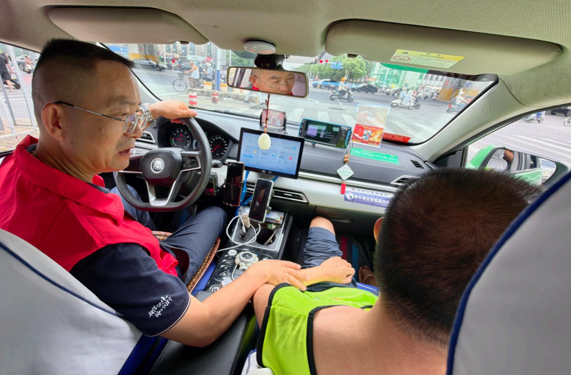 免费送考助力高三学子奔赴考场;争分夺秒送重度昏迷的孕妇就医,保住母子平安;苦口婆心劝导意欲轻生的陌生乘车女孩,让其重燃生活的希望;在各大爱心团队参与几十场公益活动,去敬老院、留守儿童学校慰问,助残,关爱空巢老人;他的出租车80岁以上老人免费乘坐;打算百年后遗体捐献,眼角膜移植……关于李明宝的事迹不胜枚举。近几年他又开展了免费汽车应急救援服务,得到同行们的一致称赞。2018年,李明宝成立了志愿服务队,他整合自家楼栋内的热心居民做公益事业,同年,李明宝当选助人为乐类“蜀山好人”和“合肥好人”。图为李明宝送病人去医院。(宣梅 摄)