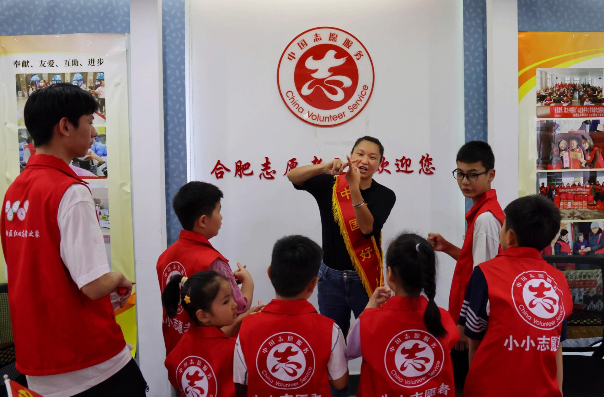 洪云子,女,土家族人,1977年出生于湖北长阳土家山寨,是一位献血达人和公益达人。20年来,她坚持无偿献血,累计献血26000毫升;她还成立“合肥志愿者之家”,带动志愿者们助学助困、开展多种志愿服务活动,用爱心温暖他人。图为洪云子在合肥市志愿者之家,组织小小志愿者进行夏日送清凉活动前给孩子们进行宣讲。(戴云 摄)