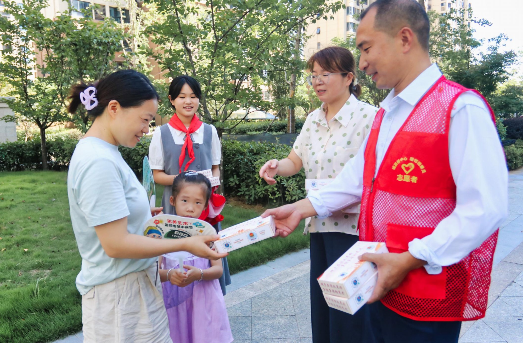 2022年4月19日,刘忠果驾车等红灯时,目睹两车相撞后一辆轿车瞬间起火。他立即冲上前,拍打车窗唤醒被困司机,并冒着大火将腿部卡住的驾驶员救出。随后,他再次冲向副驾驶,在车门变形的情况下,与路人合力救出昏迷的乘客。火势迅速蔓延,他又协助救出另一辆事故车中的昏迷女司机。待三名伤者全部脱险后,他报警并守护现场,直到民警和交警赶到才默默离开。图为刘忠果(右一)正在与社区志愿者共同开展反诈活动宣传。(黄善元 摄)