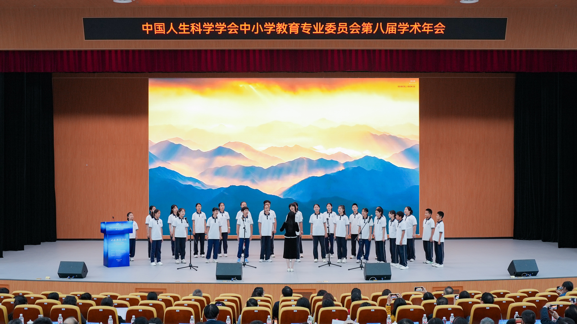 会议正式开始前,北京第五实验学校合唱团的同学们以一曲《追寻》为大会拉开帷幕。清澈的歌声回荡在会场,传递出“五实”学子对教育本真的追寻、对成长未来的向往,也为整场学术盛会注入温暖而有力的青春气息。