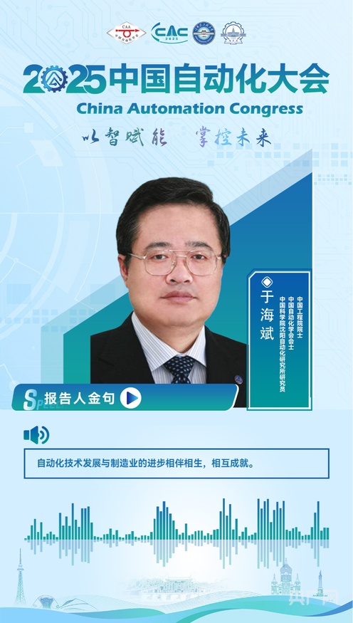 10月10日至12日,2025中国自动化大会(CAC2025)在黑龙江省哈尔滨亚冬体育馆召开。在大会报告环节,中国工程院院士、中国自动化学会会士、中国科学院沈阳自动化研究所研究员于海斌将目光聚焦于“人工智能时代的制造自动化”。他表示,自动化技术发展与制造业的进步相伴相生,相互成就。(来源:中国自动化学会)