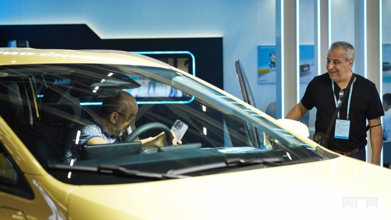 境外采购商在试驾展出的新能源汽车(央广网记者 官文清 摄)