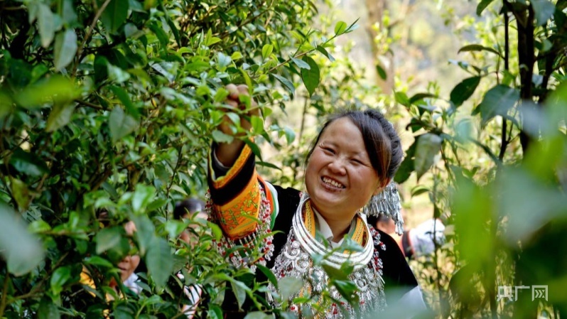 苗族同胞在采摘古树茶叶(央广网发 纳雍县融媒体中心供图)