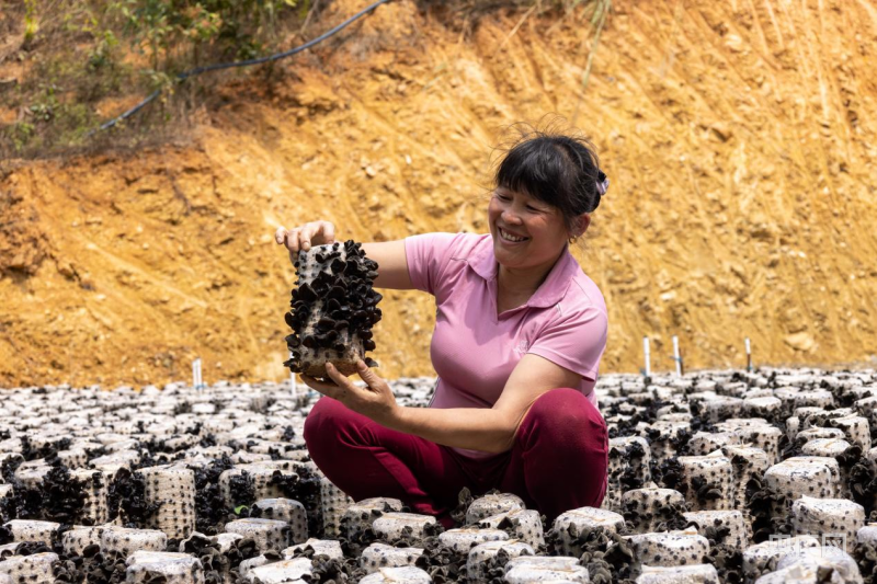 广西百色市田林县潞城瑶族乡木耳种植示范基地的150万棒黑木耳迎来采摘高峰期。工人们忙着采收、晾晒,喜悦之情溢于言表。