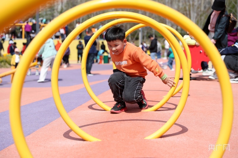 小朋友们在“口袋公园”里游玩,乐享暖阳(央广网发 张进刚 摄)