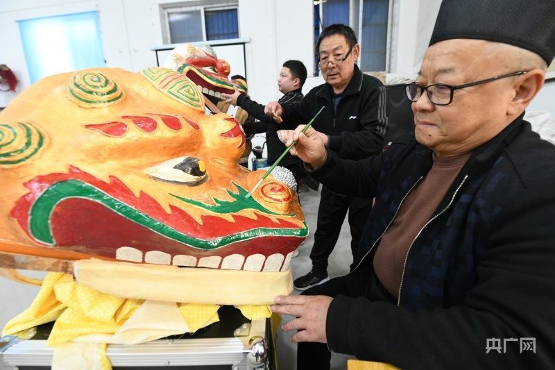 老艺人为狮子头做彩绘(央广网发 梁照曾 摄)