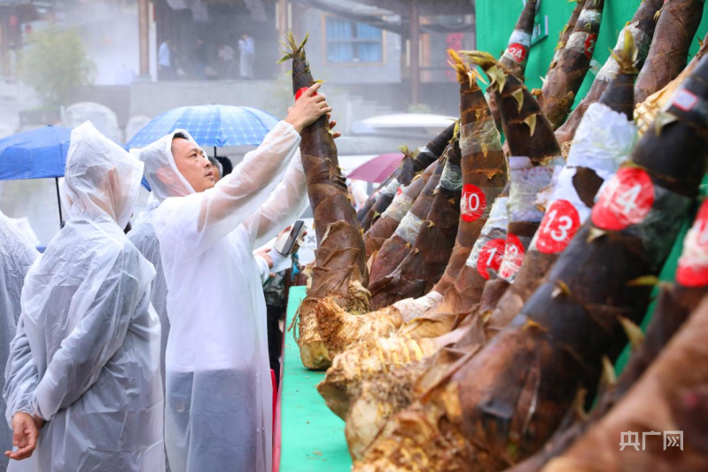 和气温一起攀升的,是收获的节奏。4月20日,江西省抚州市乐安县举行了第二届乐安竹笋文化节暨笋王争霸赛,半人多高的参赛笋摆成一排,蔚为壮观。