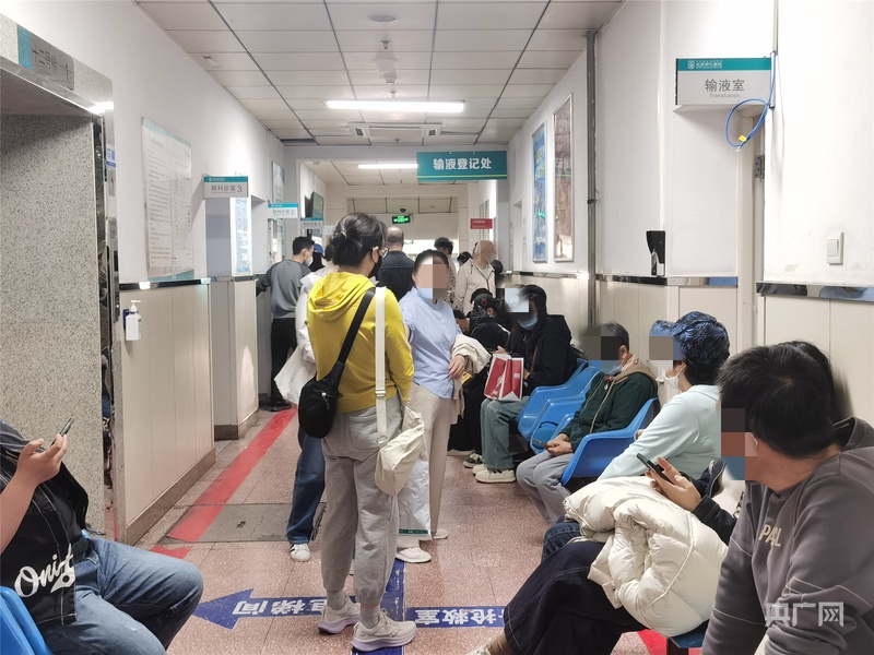 急诊科眼鼻喉诊室外等候叫号的患者(央广网记者 庞婷 摄)