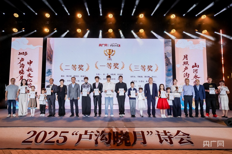 中华经典诵读大会·2025“卢沟晓月”诗会自今年8月份启动以来,首都各界报名踊跃。经过专业评审团从语音发声、情感表达、语言技巧、文本理解、形象塑造五大项13个小项对选手作品进行严格筛选和评定,共有49人分享六个组别的一二三等奖。篇章尾声,出席活动的领导为获奖者代表颁发证书。