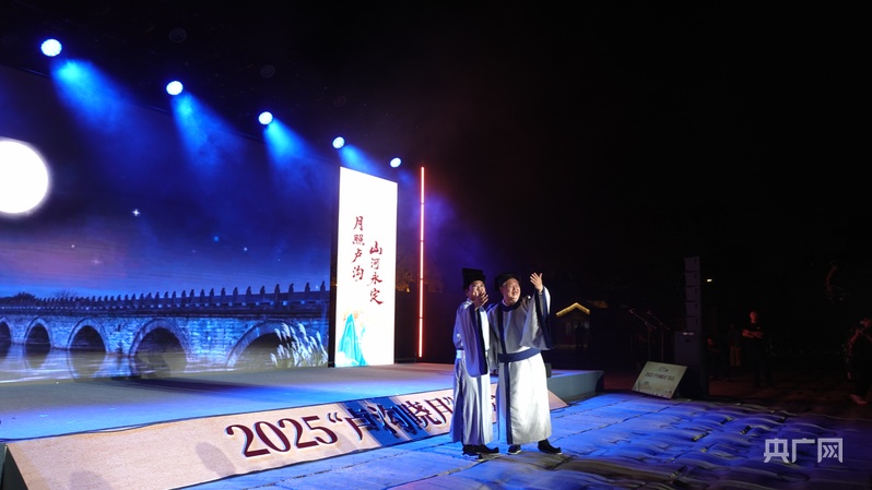 央广网北京9月26日消息(记者 朱冠安 实习记者 王子玥)“永定河,出西山,碧水环绕北京湾……”9月26日晚,北京永定河畔卢沟桥东广场,在丰台区第五小学学子合唱《卢沟谣》的清澈歌声中,中华经典诵读大会·2025“卢沟晓月”诗会温情启幕。本次诗会由中央广播电视总台央广网与北京市丰台区委宣传部联合主办,围绕“月照卢沟 山河永定”主题,以经典诵读、歌舞演奏等形式,将中华经典的诗词雅韵与“卢沟晓月”的历史底蕴深度融合,共同开启一场贯通古今、跨越千年的文化盛宴。