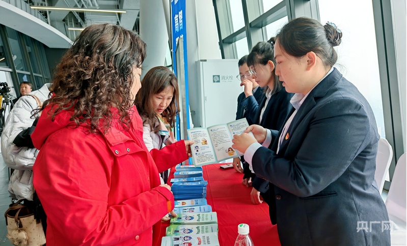 工作人员为群众讲解社保知识(央广网记者 庞婷 摄)