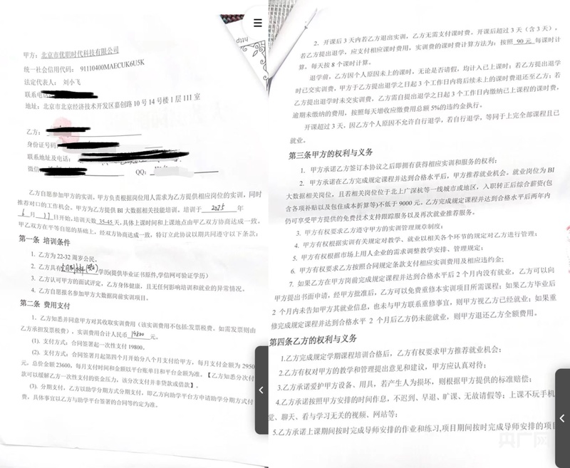 陈方磊与北京优职时代科技有限公司签订的“协议”(央广网发 受访者供图)