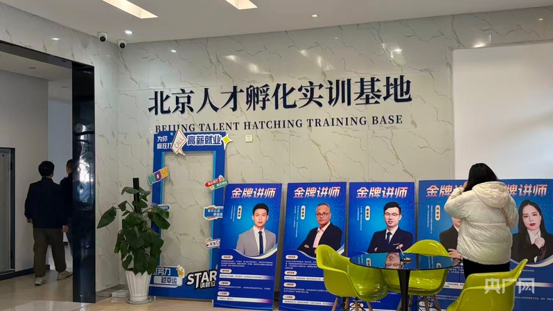 北京优职时代科技有限公司自行悬挂的“北京市人才孵化实训基地”(央广网记者 朱冠安 摄)