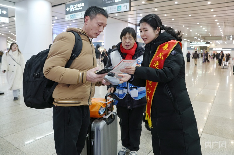 央广网北京2月13日消息(记者 庞婷)近日,在北京南站的候车大厅里,多了一批身披服务绶带的“就业向导”,他们手捧一份份“暖心就业礼包”,在熙熙攘攘的旅客中,送上来自北京的就业关怀与新春祝福。