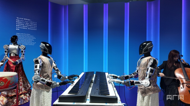 机器人“钢琴师”四手联弹(央广网记者 朱冠安 摄)