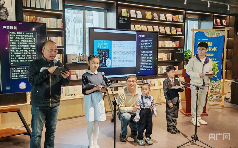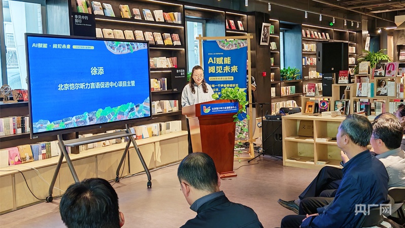 当天最动人的环节,是5位年龄从4岁到57岁的听障诵读者接力朗读绘本《亮世界》。3位小朋友(年龄从4岁到10岁)早期佩戴助听器或植入人工耳蜗并经过专业康复训练已能听会说,进入普幼普小;2位成年听障者因错失口语发展黄金期,日常交流以手语为主。诵读中,孩子们的声音稚嫩而清晰,是我国听障儿童“早发现、早干预、早康复”事业成果的生动证明;成年听障者借助华为“小艺声音修复技术”,将原本无法被听懂的口语修复为可被听懂的诵读声音。当孩子们清澈的声音与AI修复后的声音在图书馆接力响起,全场观众用热烈的掌声见证科技赋能的温暖力量。