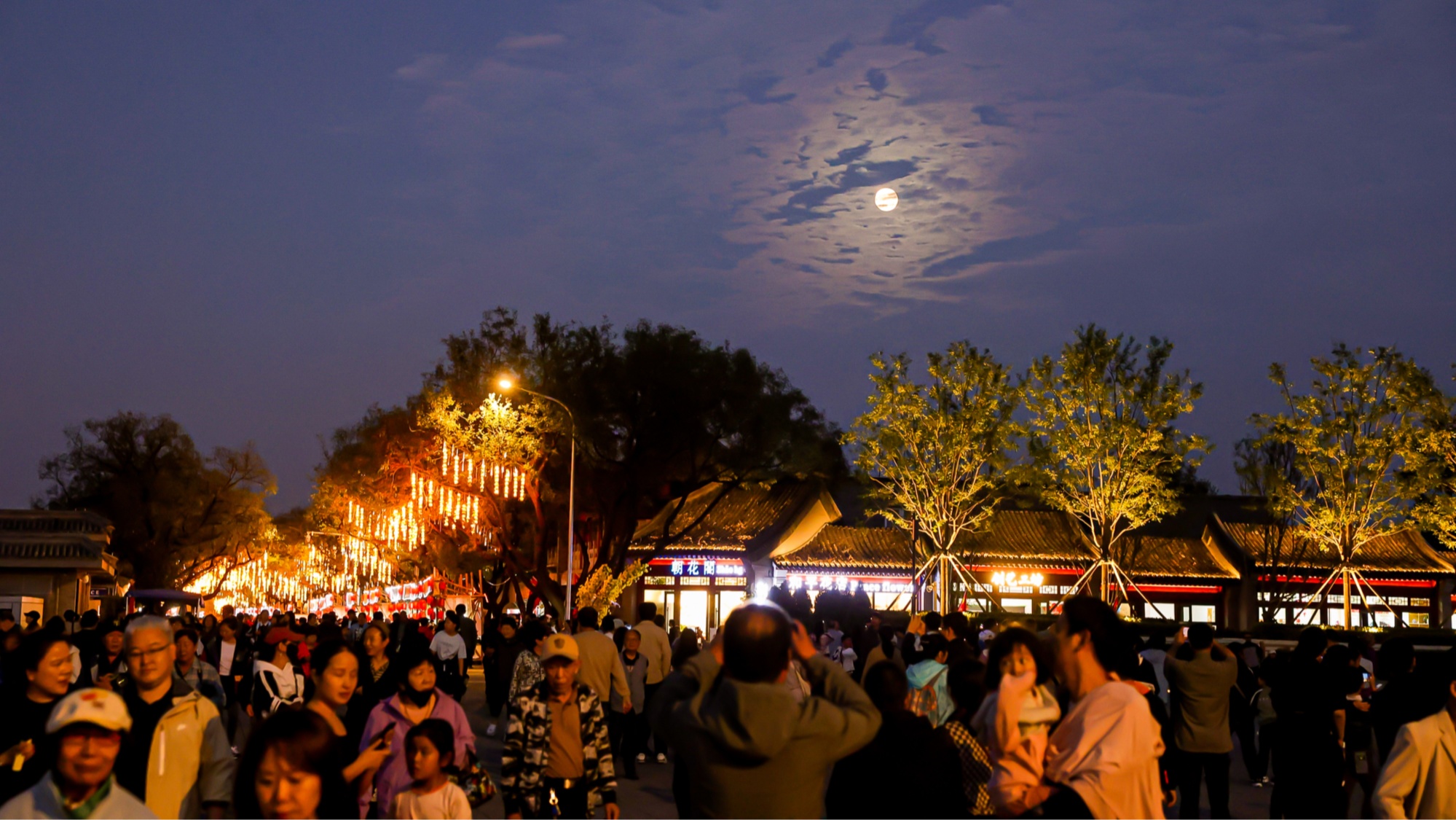 10月6日,宛平城迎来国庆中秋假期的高光时刻:直径5米的“光影月亮”从西南城墙缓缓升空,还原“卢沟晓月”古画意境;不远处,一轮圆月也从云层后探出头来,与这轮“人造月”在宛平城墙上空形成“双月同辉”的奇景。