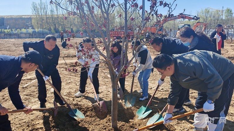 央广网北京4月8日消息(记者 朱冠安)挥锹铲土、扶苗扶正、填土夯实、提桶浇水……4月7日上午,北京市丰台区北宫镇辛庄村南营红绿灯北侧一片热火朝天的劳动景象,近百名镇机关干部、各村和社区工作人员、镇属企业职工与北宫小学师生一同开展义务植树活动,共栽植西府海棠、玉兰、碧桃、迎春、金枝国槐等苗木220余株,为辖区再添一片新绿。