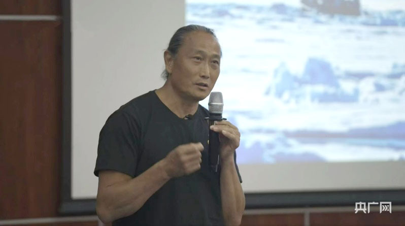 翟墨在“人类首次不停靠环航北冰洋”分享会现场(央广网发 主办方供图)