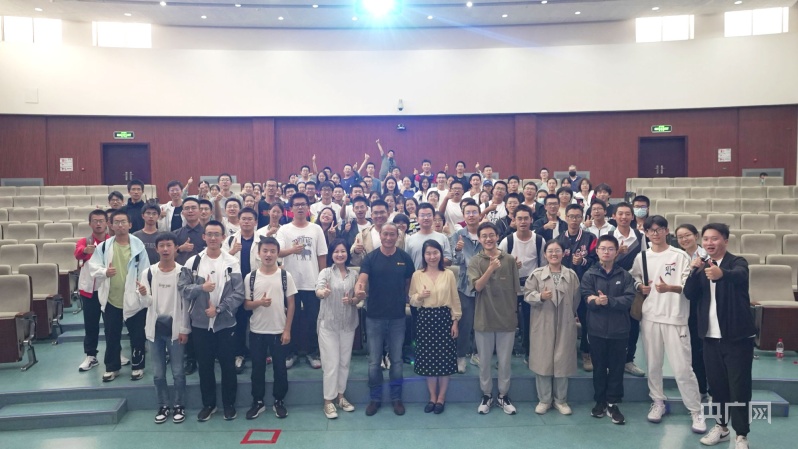 翟墨与学校师生合影留念(央广网发 主办方供图)