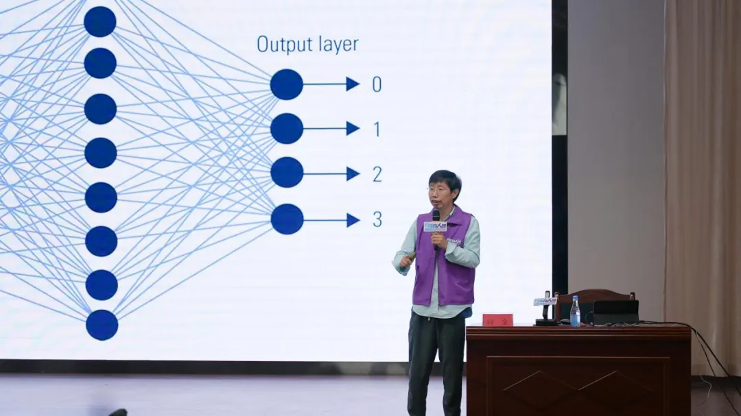 谢作如在报告中系统讲解人工智能的基本概念与发展脉络。讲座以AI的起源与定义为起点,结合达特茅斯会议等关键历史节点,清晰剖析“设计派”与“学习派”两大技术范式的差异与演进逻辑。内容深入浅出,谢作如巧妙设计“真人模拟神经元”“文本分类”等互动游戏,将机器学习、神经网络的核心原理具象化;同时引入生成式AI的前沿应用,最后引导学生思考AI与人类未来的关系,点燃初学者对人工智能的兴趣与探索热情。