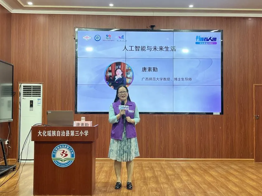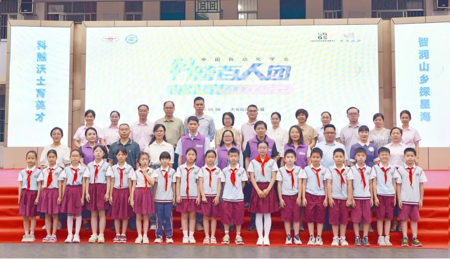 为进一步支持国家乡村振兴重点帮扶县,下沉优质科普资源,中国自动化学会联合中国科协农村专业技术服务中心共同开展2025年“CAA科普百人团——科技教育乡村行”公益活动。CAA普及工作委员会、CAA智慧教育专业委员会、广西壮族自治区科学技术协会、河池市科学技术协会和大化瑶族自治县科学技术协会共同承办“科普百人团一科技教育乡村行·广西大化瑶族自治县”公益活动。5月8日,科学家引领科普百人团“线上+线下”开讲,走进大化瑶族自治县高级中学、大化瑶族自治县实验中学、大化瑶族自治县实验小学、大化瑶族自治县第三小学和大化瑶族自治县新城小学“讲好一堂人工智能启蒙课”,为青少年提供一个了解人工智能的平台,将科技送到孩子们的身边,提高青少年对人工智能的认识和兴趣。