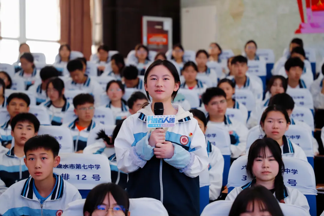 紧接着,六盘水市第八中学一级教师许婷带来“程开甲——隐姓埋名的核司令”科普报告。通过珍贵的历史影像与音频,许婷介绍了“两弹一星”功勋科学家程开甲的求学和科研历程。初一学生农昊阳在报告后表示,“跟程爷爷读大学时相比,我觉得我们现在太幸福了,所以我们更要珍惜现在的学习环境、勤奋学习,将来报效祖国。”