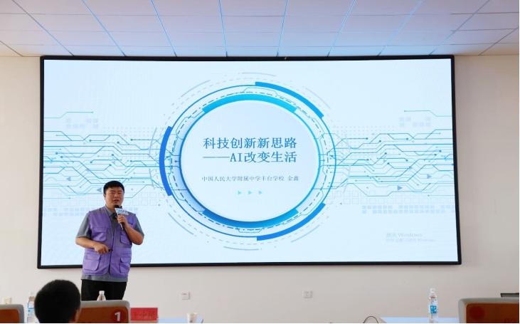 金鑫开展了以“科技创新新思路——AI改变生活”为主题的讲座,巧妙融合互动体验与实例解析,带领孩子们沉浸式感受人工智能技术在日常生活中的广泛应用。他以人大附中丰台学校学生开展的科技创新活动为参照,引导现场学生从身边生活实际出发,发现学习、生活中的具体问题,并尝试结合AI技术构思解决路径。为让“科技改变生活”的理念更易理解,他还结合AI老年人防跌倒系统设计、基于AI视觉的青少年情绪监测、AI 手语翻译等贴近生活的实例,直观展现AI技术在民生服务、健康关怀等领域的应用价值,让学生们深刻体会到科技与生活的紧密联系。