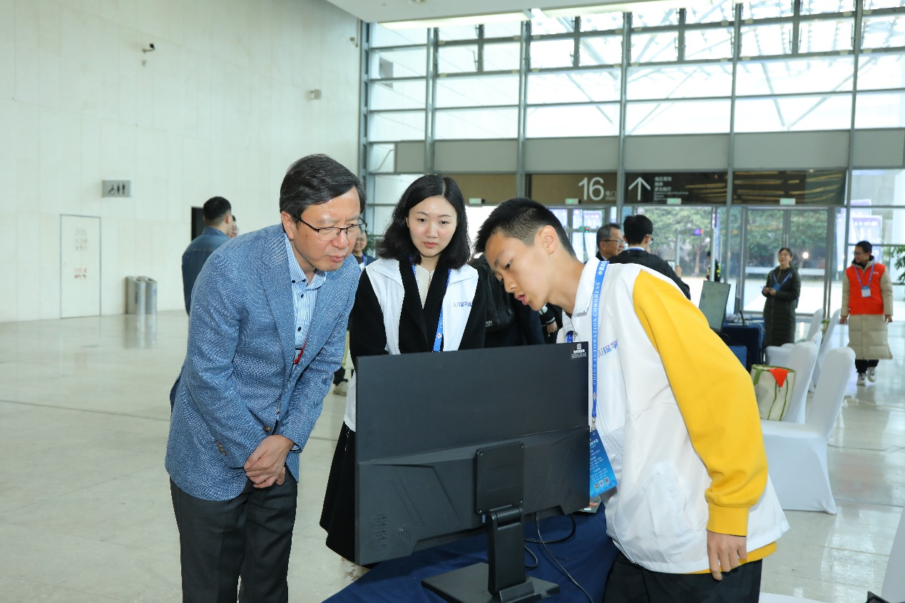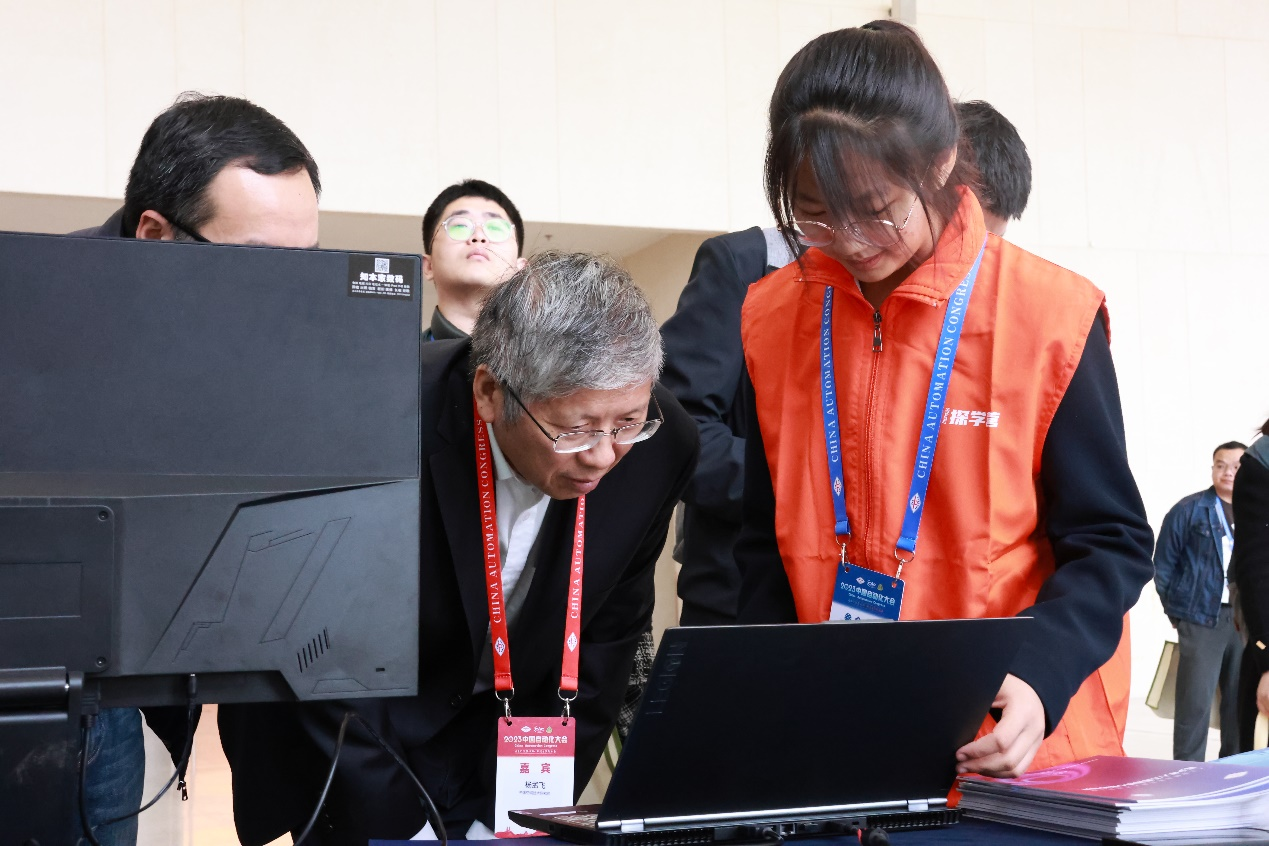 11月18日上午,中国工程院院士、中国自动化学会理事长、西安交通大学教授郑南宁,中国工程院院士、中国自动化学会副理事长陈杰,中国科学院院士、中国自动化学会副理事长、中国空间技术研究院研究员杨孟飞,中国工程院院士、中国自动化学会副理事长、中南大学教授桂卫华,中国工程院院士、中国自动化学会特聘顾问、中国科学院沈阳自动化研究所研究员王天然,中国工程院院士、中国自动化学会常务理事、湖南大学教授王耀南,欧洲科学院院士、中国自动化学会副理事长、华南理工大学教授陈俊龙,以及中国自动化学会监事长、中国科学院自动化研究所研究员王飞跃等科学家驻足在展台前,观看和询问孩子们的研究课题和研究过程,连连发出赞许和惊叹,鼓励孩子们继续加油、全面发展,早日成为行业领军人才,并为孩子们写下寄语。