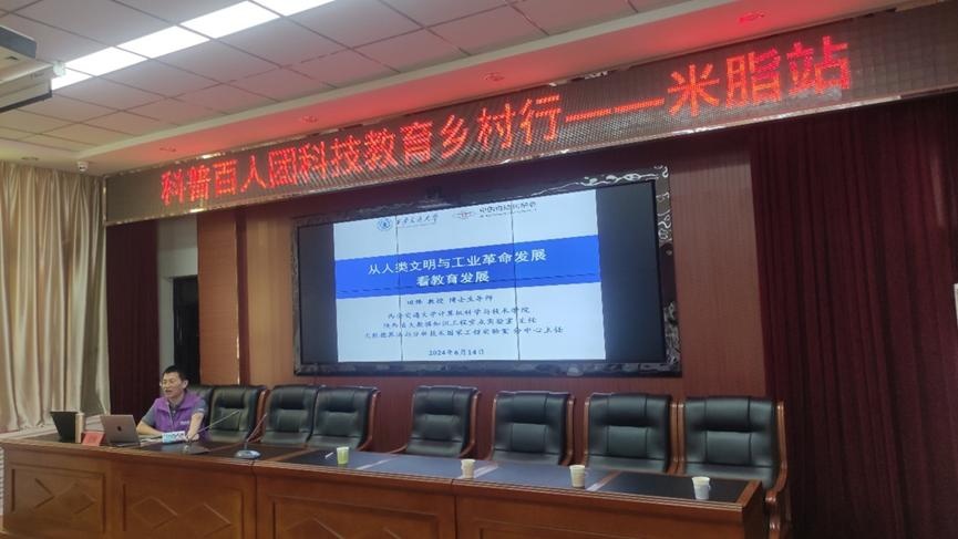 6月,在陕西省米脂县的四所中小学,CAA智慧教育专业委员会副主任、西安交通大学计算机学院教授田锋作《从人类文明与工业革命发展看教育发展》的主题报告,他从人类进化发展史的角度,讲述教育的重要性及发展变化,并介绍了西安交通大学研制的基础教育知识森林学习系统、教育质量大数据平台、学生画像与关爱系统等。