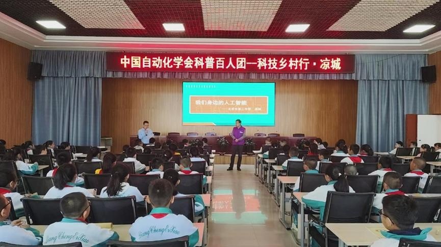 4月中旬,在内蒙古自治区乌兰察布市凉城县的四所小学里,北京大学工学院教授、博士生导师谢广明带来题为《魅力机器人》的科普讲座;中国自动化学会普及工作委员会副秘书长张梦晗以《睁眼看世界:未来有AI》为题给青少年讲解学习人工智能的重要性和价值;中国自动化学会普及工作委员会副秘书长,国防科普委员会研究员、副秘书长马娟娟解析《未来已来的无人系统》;中国自动化学会普及工作委员会副秘书长、北京市第二中学高级教师高凯带同学们了解了《我们身边的人工智能》。
