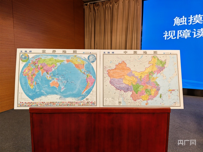 盲文版《无障碍中国地图》和《无障碍世界地图》即日起公开发行(央广网记者 庞婷 摄)