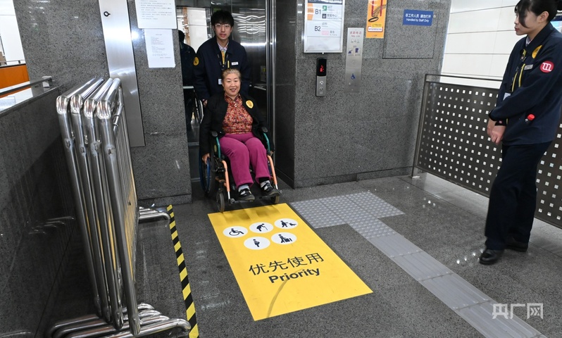 肢障乘客体验地铁无障碍服务(央广网发 京港地铁供图)