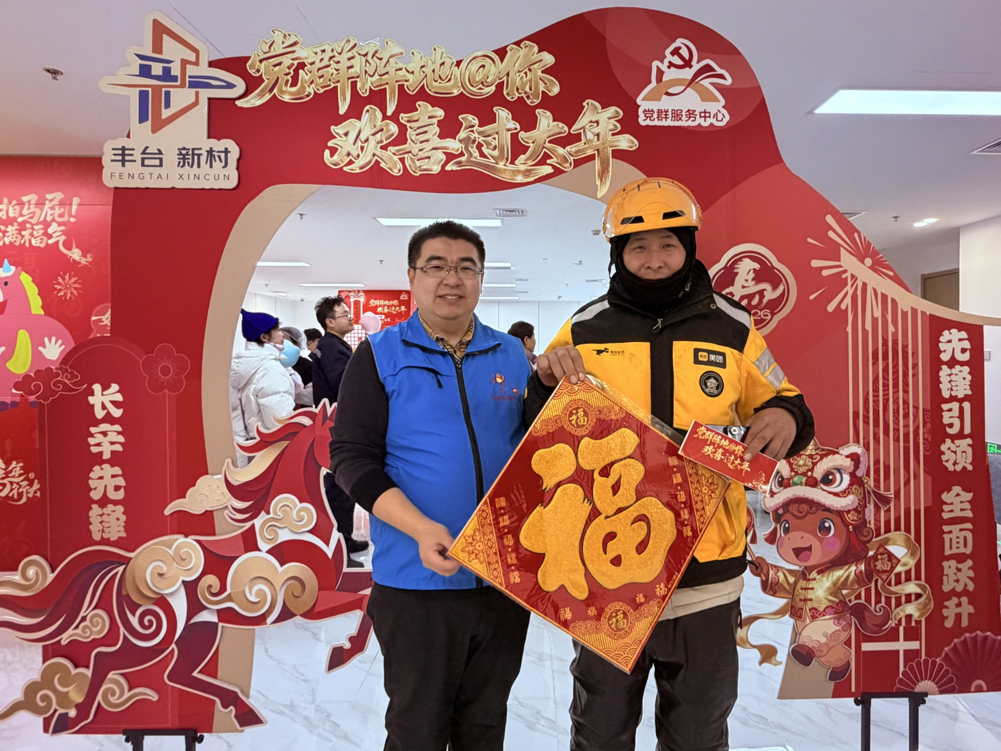 央广网北京2月6日消息(记者 朱冠安)2月4日,北京市丰台区新村街道党群服务中心在天坛智能医工产业园举办“党群阵地@你 欢喜过大年”主题迎新春活动。活动吸引辖区新兴领域党员群众、园区企业职工等200余人参与。街道党工委副书记陈见喜带领党群办、平安办等相关科室负责人也来到现场,与大家一起写福字、聊家常。
