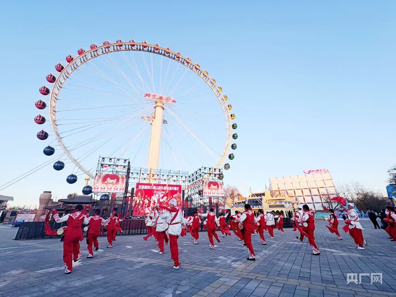 活动内容集非遗表演、光影艺术、特色美食、趣味互动于一体。文艺演出板块精心策划四大主题,全天共计21场精彩节目轮番上演:气势恢宏的非遗安塞腰鼓、年味浓郁的舞龙舞狮、绚丽夺目的“火龙钢花”演绎“龙在火中飞”的奇观;“时空穿越”主题花车与鱼灯巡游巧妙融合国潮风尚与非遗韵味,摩天轮舞台持续献上中西荟萃的歌舞表演,更有全民参与的“新春蹦迪”环节点燃欢乐气氛。园区内布置六大主题灯组,从神话传说到梦幻雪景,移步换景,皆为拍照打卡胜地。东园市集汇聚京味小吃、国际美食与非遗文创,音乐大道“京蒙牵手”,27家内蒙优质文旅资源进京拜年,公主花园、波音广场更设有奖嘉年华活动,配合100%中奖的入园抽奖,品牌电视、电饭煲等好礼连环放送,惊喜不断。