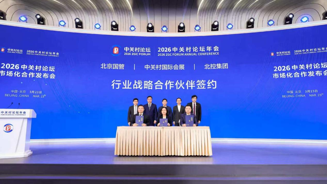 央广网北京3月24日消息(记者 朱冠安)3月23日,2026年中关村论坛市场化合作发布会在中关村国际创新中心举行。活动现场,北控集团作为行业战略合作伙伴,与论坛运营机构中关村国际会展公司签约。