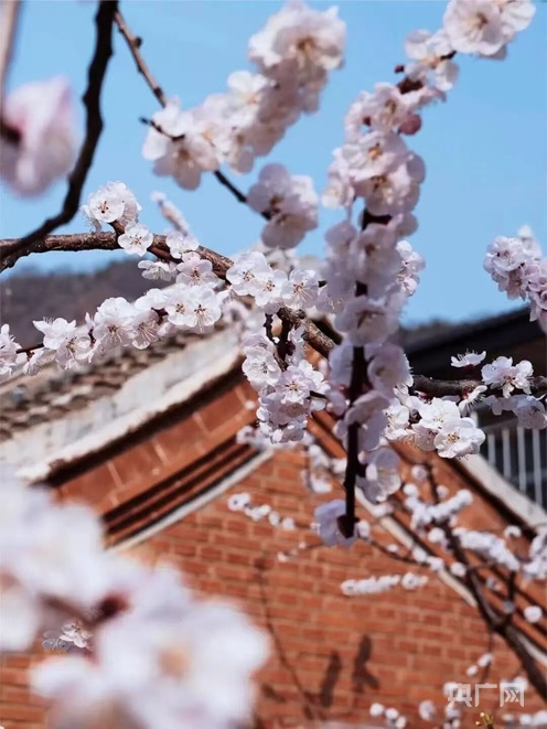 万亩红杏林位于南独乐河镇北寨村,3月底至4月初率先绽放。粉白杏花与青山、古村、徒步大道相映成画。这里是“中国红杏第一乡”,杏花观赏区、人工湖畔、43公里国际徒步大道沿线,处处皆是杏花胜景,微风拂过,尽显春日温婉诗意。