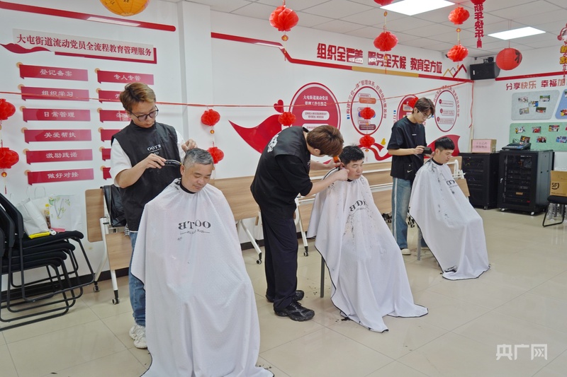 近日,大屯街道联动辖区共建单位,为骑手提供义务理发服务。理发师态度热情、手法娴熟,细致地为骑手修剪发型。街道在义务理发服务基础上,每月设置不同特色主题,让暖“新”服务更有针对性、更具温度。