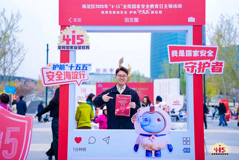 央广网北京4月14日消息(记者 阮修星)4月14日,北京市海淀区2026年“4·15”全民国家安全教育日主场活动在中关村ART PARK大融城东区(中关村广场)举办。活动以“统筹发展和安全 护航‘十五五’新征程”为主题,将AI技术、情景戏剧、非遗体验与商圈烟火气深度融合,旨在打造一个“可看、可玩、可感、可传播”的国家安全宣传教育场景,为市民带来一场“科技赋能安全、全民共建防线”的沉浸式公开课。