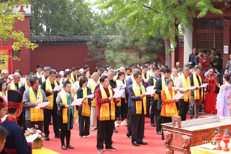 祈福仪式在轩辕庙主殿前庄重举行。来自山东庄中学的50名学生以清澈童声唱响《黄帝颂》。伴随鼓乐奏鸣,祈福典礼正式开启。现场通过诵读祈愿文、敬献鲜花、乐舞表演等形式,以当代表达追思人文始祖轩辕黄帝的历史功绩,弘扬中华文明的根脉精神。乐舞《天耀中华》在春风中徐徐展开,礼乐交融、天地和合,祈福典礼圆满礼成。