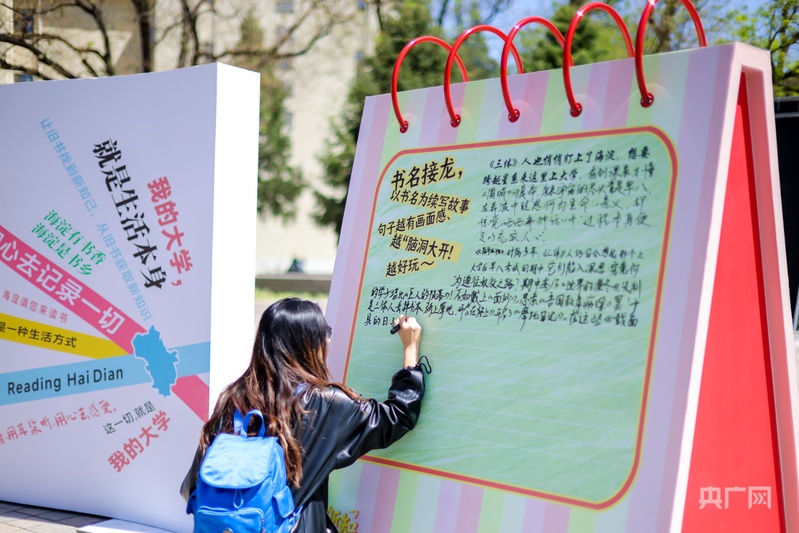 此外,现场还打造了《海淀是所大学校》打卡装置、书名接龙故事墙、旧书盲盒等沉浸式互动场景,促进以书会友、知识共享。