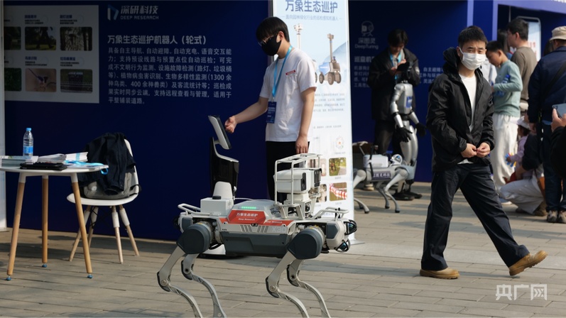 活动现场,清扫机器人在公园打扫卫生,机器狗进行巡逻检查和定点值守,生态巡护机器人通过自主导航和语音交互完成巡逻、设备巡检、生物监测等任务,割草机器人在草坪上有序工作;在展位上,AI节水机器人、智慧养护免浇灌花箱、智能虫情性诱测报仪等设备吸引市民围观了解;水面上,水面清洁无人船在巡游搜集垃圾,飞行救生圈和水下救援探测船能实时守护应急救援;在游客休息聚集区,服务机器人在智能接待、答疑解惑,无人售卖车提供雪糕、饮品等售卖服务等,各类机器人在公园场景进行应用和展示。