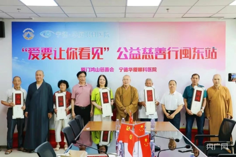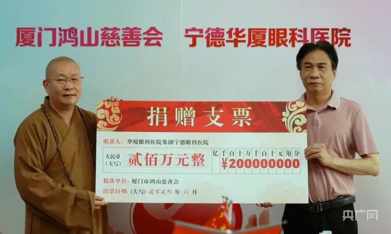 捐赠仪式上,厦门市鸿山慈善会将200万元复明公益基金赠予华厦眼科医院集团宁德华厦眼科医院(央广网发 厦门市鸿山慈善会供图)