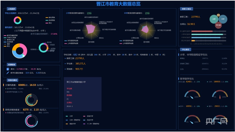 晋江市基于 “政府引导、多方参与、奖补推动”的“互联网+教育”资金保障模式,“十三五”期间全市共投入7.54个亿,完成了全域基础网络及安全技防设施设备升级改造,实现了“班班通”和“人人通”全域覆盖,建设了333所中小学校园网络中心,154个“智慧课堂”项目,首批9所泉州市智慧校园管理平台示范校、“教育城域网”及高清云视听远程会议系统等重要信息化项目。