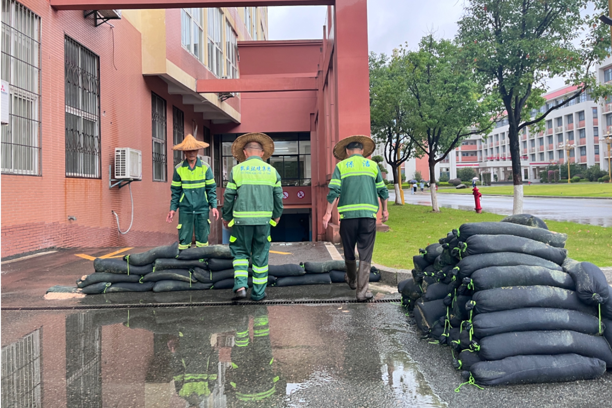 该校安排人员关闭门窗,防止暴雨和狂风破坏设施设备;及时清理排水口和管道,确保排水系统畅通;对重点部位和地势低洼区域进行细致检查,增设雨水井,设置提醒警戒线、防淹板、沙袋等防护措施,防止雨水倒灌。相关人员还准备了各类防涝抢险物资,如沙袋、雨衣、雨鞋、照明手电、救生衣、喊话喇叭等,以应对可能出现的紧急情况。